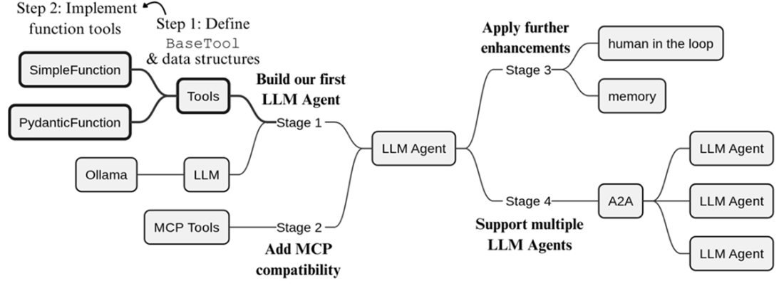 Figure 2.1 The focus of the current chapter, through the lens of our build plan introduced in Chapter 1. Before we can build an LLM agent, we first need to properly define tools and how they can be used within our framework.
