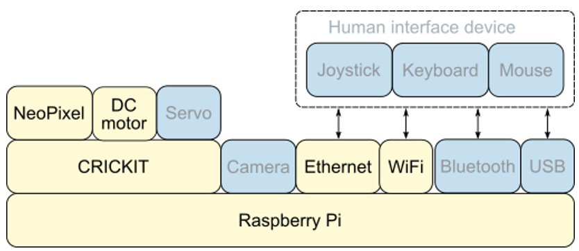 Figure 2.1 Hardware stack: The Raspberry Pi will handle network communication using Ethernet and Wifi.