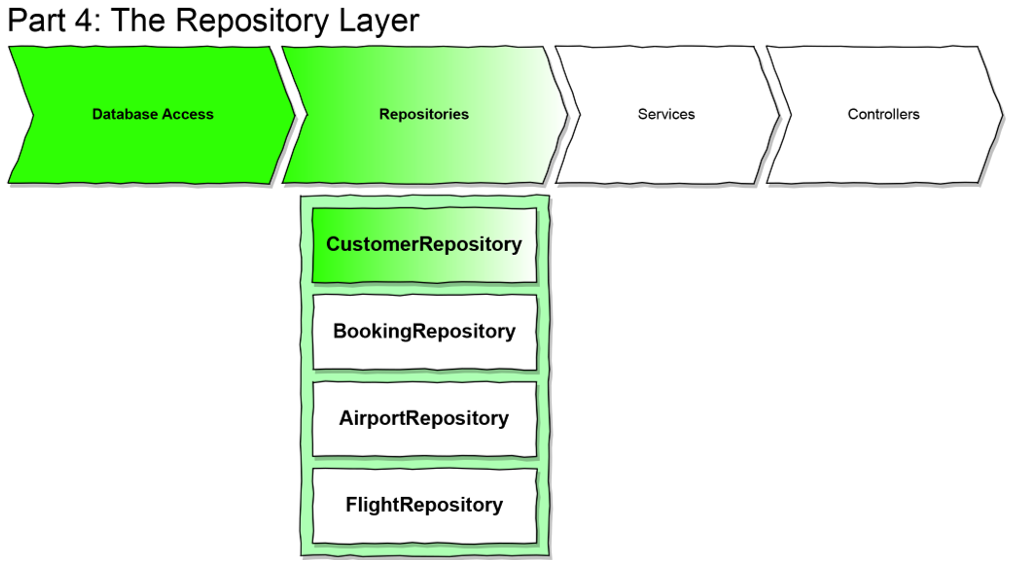 Figure 6.1 After having implemented the database access layer in chapter 5, we move on to implementing the CustomerRepository in this chapter.