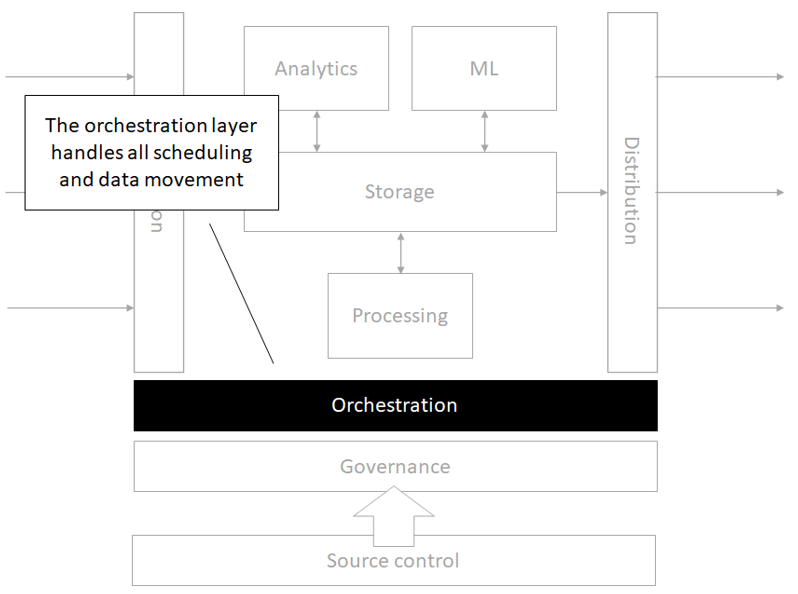Figure 4.1 The orchestration layer handles scheduling for all tasks and data movement into and out of the data platform.