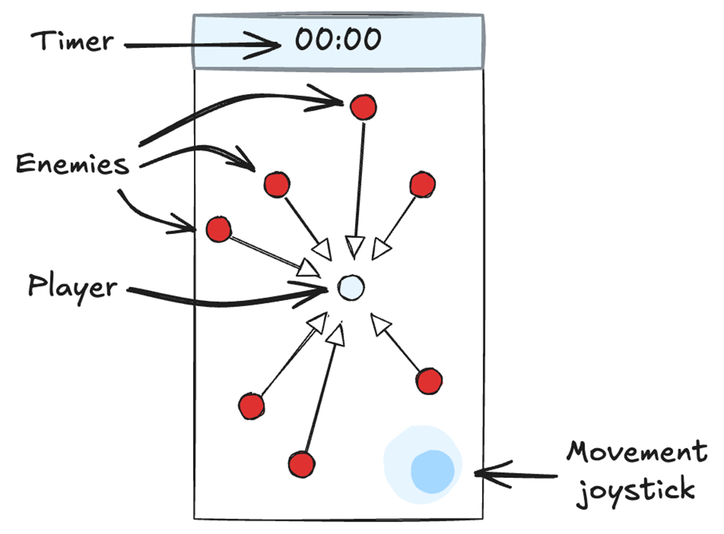 To help show what a DOD architecture looks like, we will create a basic version of our survivor/bullet-heaven game, as shown in Figure 4.1.