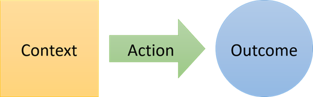 We all know what an example is, but when it comes to creating concrete examples that unambiguously illustrate how a system should behave, we need to ensure they’re good examples. It’s best to think of an example as being an artifact divided into 3 parts - context, action and outcome, as shown in figure 3.1 - and to think of these in the opposite order.