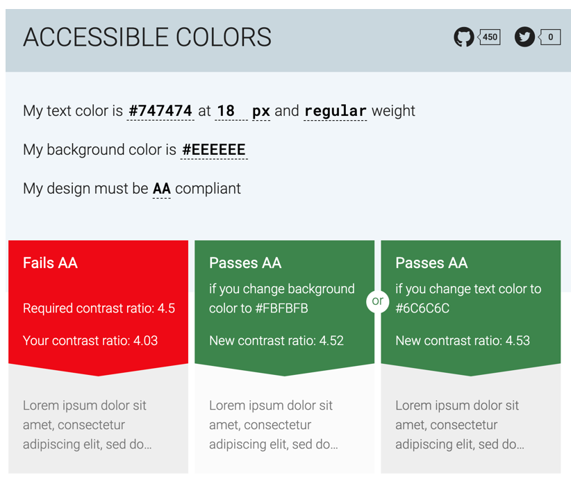 Hands down, my very favorite accessibility checker, or color checker, is https://accessible-colors.com/ which you can see in action in figure A.1.