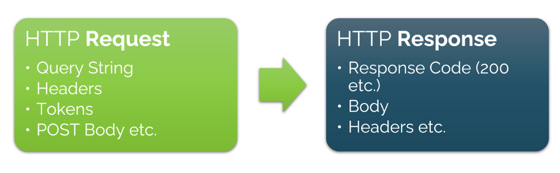 Figure 13.1 An HTTP closely matches a function call – a request payload followed by a response from the server.