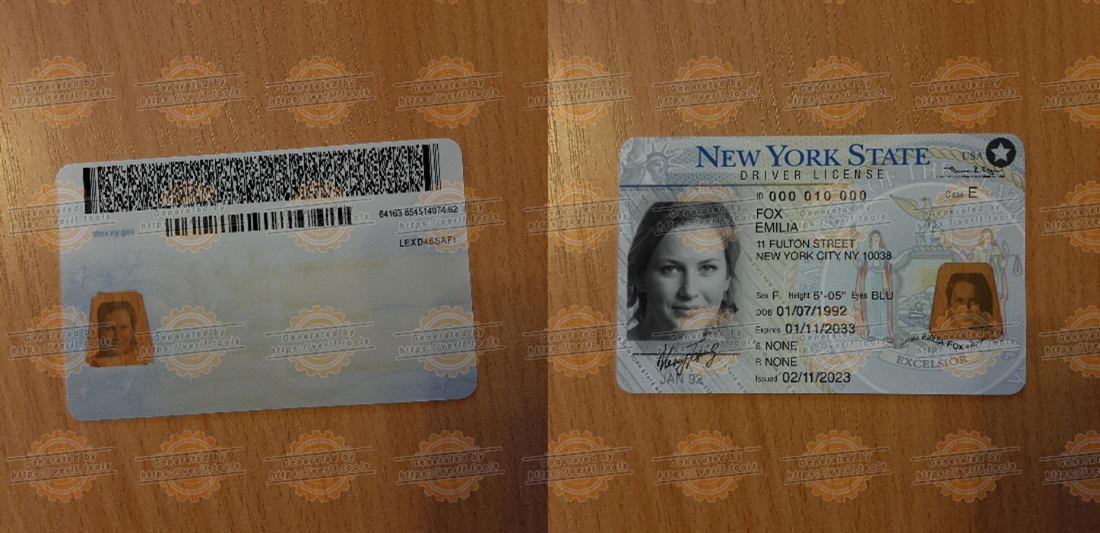 Figure 6.2 A real-looking fake identity document – New York driver’s license. The left image shows the rear side of the document and the right side shows the front side of the document.