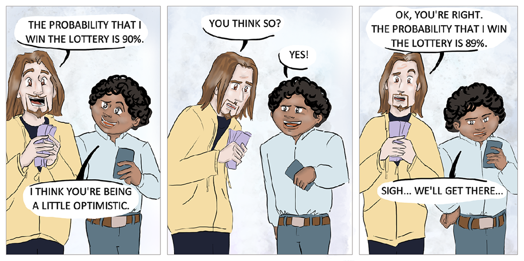 In the previous chapter, we built a classifier that determined if a sentence was happy or sad. But as we can imagine, some sentences are happier than others. For example, the sentence “I’m good” and the sentence “Today was the most wonderful day in my life!” are both happy, yet the second is much happier than the first. Wouldn’t it be nice to have a classifier that not only predicts if sentences are happy or sad but that gives a rating for how happy sentences are—say, a classifier that tells us that the first sentence is 60% happy and the second one is 95% happy? In this chapter, we define the logistic classifier, which does precisely that. This classifier assigns a score from 0 to 1 to each sentence, in a way that the happier a sentence is, the higher the score it receives.