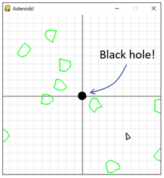 There has just been a catastrophic event in the universe of our asteroid game: a black hole has appeared in the center of the screen!