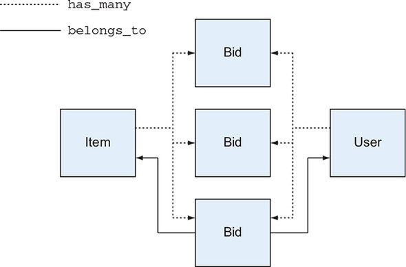 Both of these points are similar in that they rely on associating one record or schema with another. Bids (which don’t yet exist) should belong to a user and an item. When you create new items, you want an item to be owned by a user, and a user can own many items. Both a user and an item can have many bids.