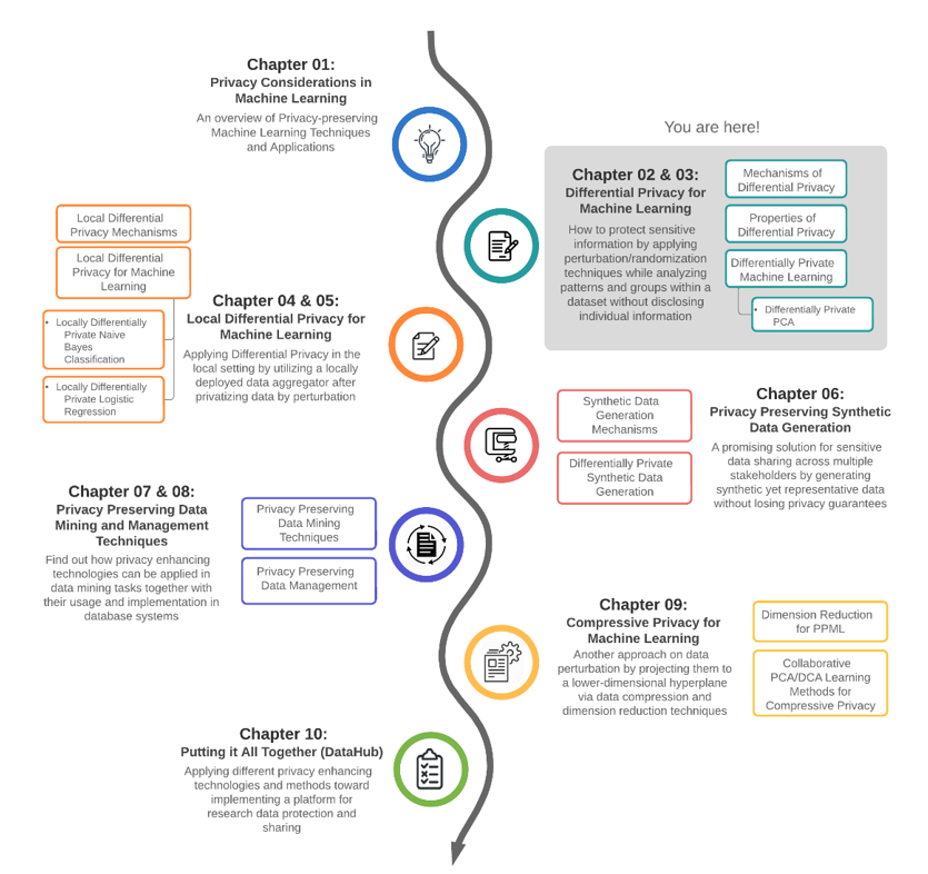 We have investigated various privacy-related threats and vulnerabilities in machine learning and numerous concepts of privacy-enhancing technologies in the previous chapter. From now on, we will learn the details about several essential and popular privacy-enhancing technologies. The first one we will introduce here is differential privacy. Differential privacy is one of the most popular, yet influential privacy protection schemes used in many different applications today. It introduces a fascinating concept of making a dataset robust enough for the changes of any single sample in the dataset by computing the data statistics. For instance, we can consider machine learning models as complex statistics which describe the distribution of their training data. This chapter will walk you through our 1st part of differential privacy for machine learning.