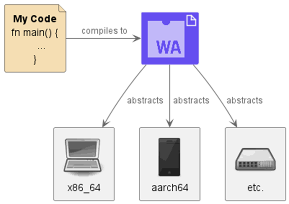 Figure 1.1 Wasm as an abstraction layer virtualizing over various kinds of hardware.