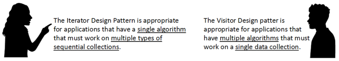 The Iterator Design Pattern enables a single algorithm to iterate over multiple sequential collections of objects without needing to know how the collections are implemented. Our first example application is modeled from this design pattern. The application’s algorithm can generate a report about the players on several baseball teams, even though each team stores its player data in a different type of sequential collection.