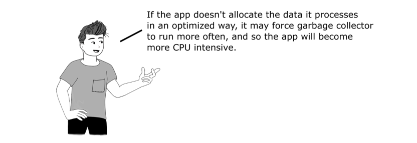 An app can run slower just because it doesn't allocate data in the memory in an optimized way. If the app allocates more memory than the system provides, the app will stop working and throw an error. It's essential we write app capabilities that use their allocated memory in an optimized way.